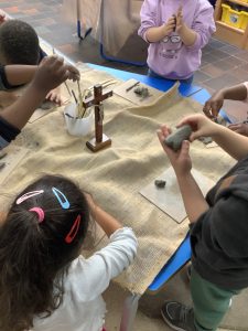 Nursery have been learning about Holy Week with a focus on the cross. They have sculpted and made their own crosses as they learn about Jesus carrying the cross and dying on the cross. They ended the week making hot cross buns.