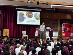 We were extremely blessed at the end of half term to be visited by the Local Legend – Manny Singh Kang after being invited by our school council.