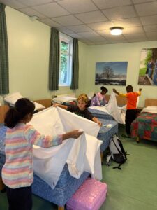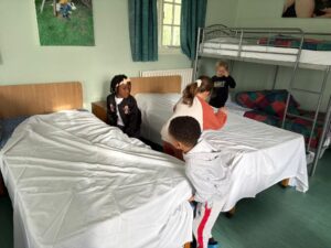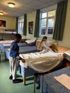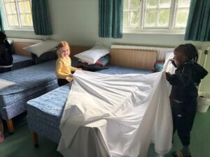 This morning, the children have got up and dressed, stripped their beds and packed! They then went for breakfast before remaking the beds for the next school ready for some more activities!
