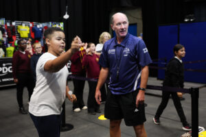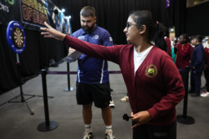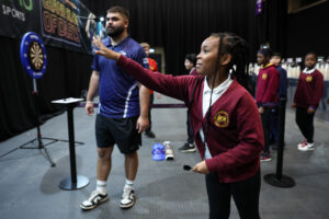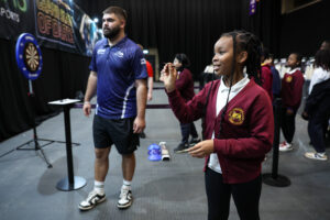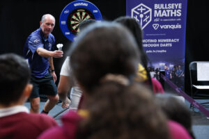 Through our partnership with Wolves Foundation, we were very grateful to be invited to WV Active to participate in a PDC Bullseye Maths experience. The venue is currently set up for the 2025 Grand Slam of darts, and all the world’s best darts players are currently in our city participating in the event.